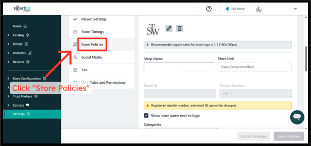 Store policies help customers understand how cancellations, returns, refunds, and other store-related rules work on your SmartBiz website. These policies are mandatory for compliance and are required to enable online payments on your store.