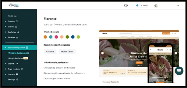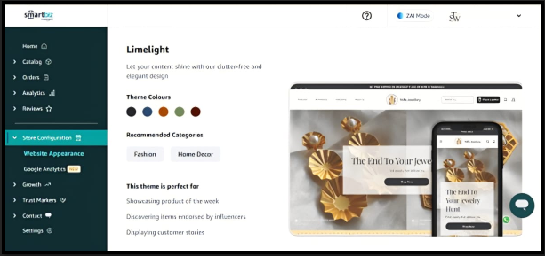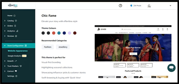 Currently, SmartBiz offers four website themes. All themes are mobile-responsive and optimized for checkout, but each differs in layout depth and customization flexibility.