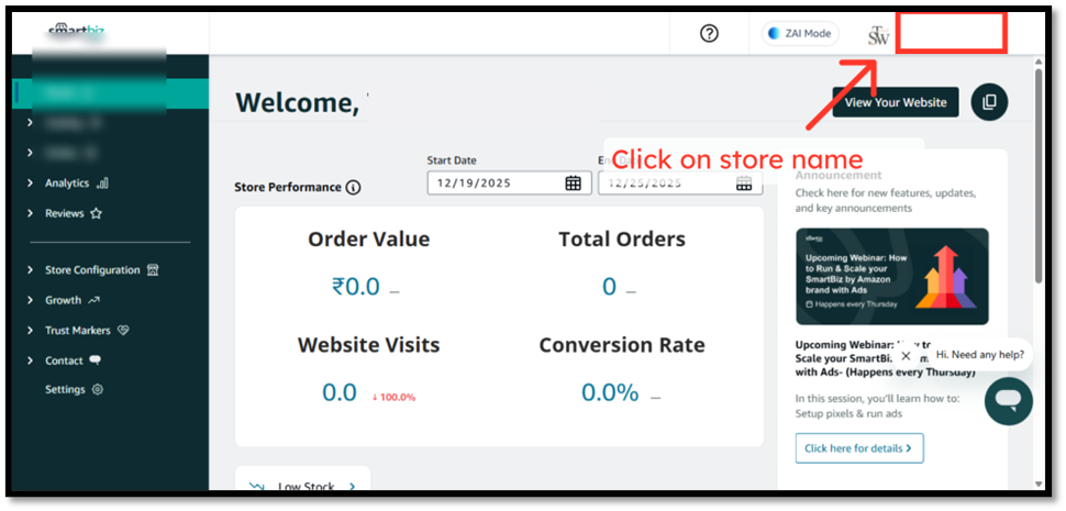 Alternatively, go to Profile in the SmartBiz app by clicking on the store name.