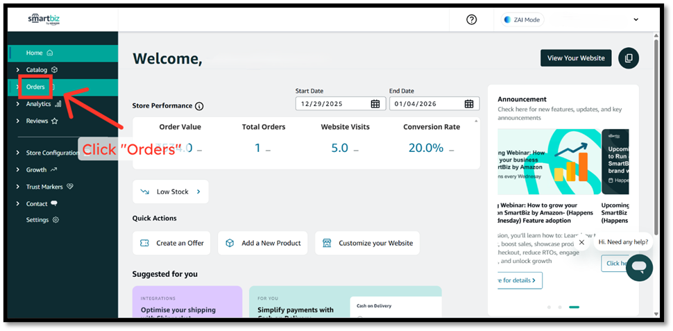- Go to the ‘My Orders’ page in your SmartBiz account.
