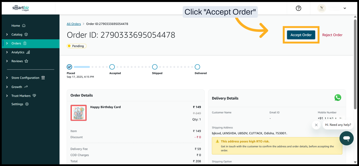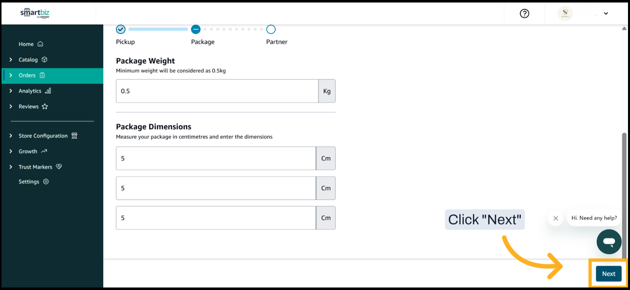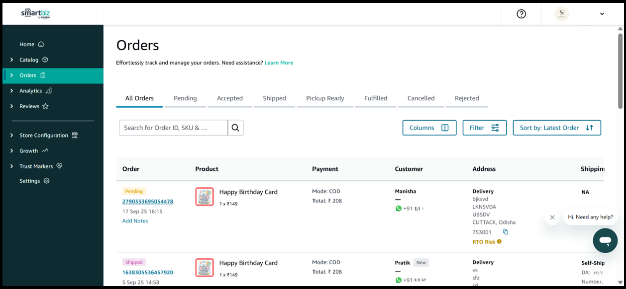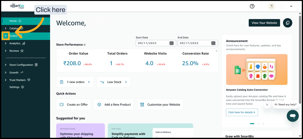 1. Log in to smartbiz.amazon.in and navigate to Orders section.
