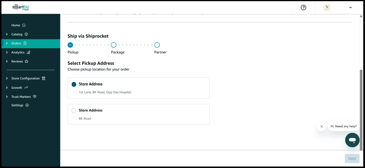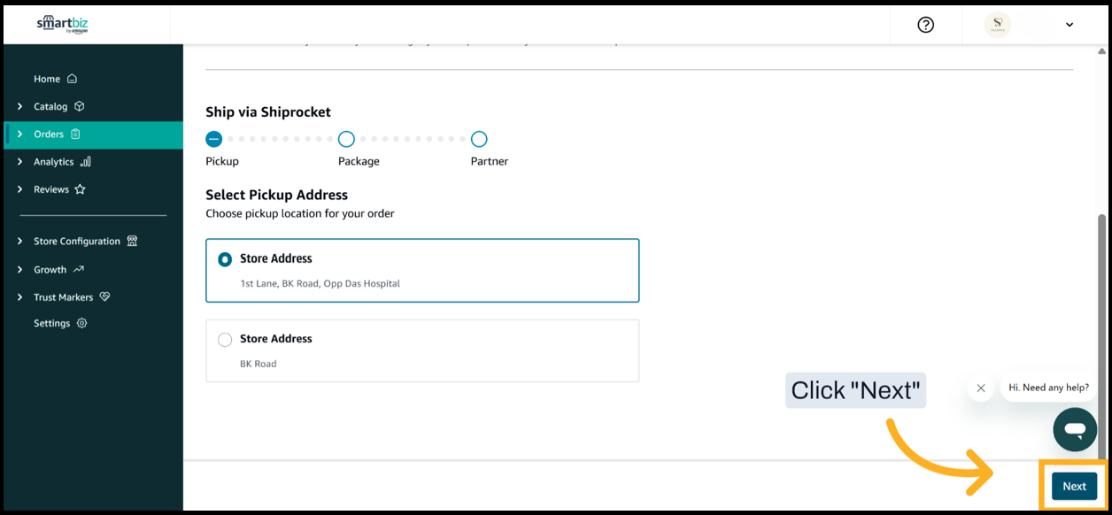 7. If you have more than one pickup address then select a pickup address from where you want the order to be picked up.