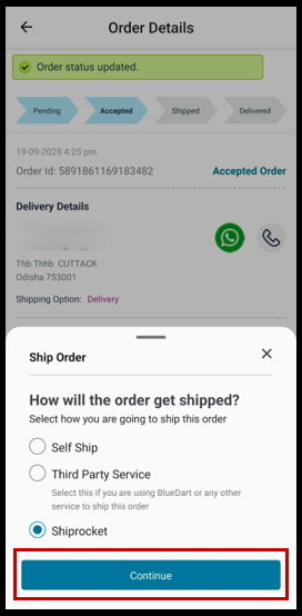 To Ship your order with Shiprocket via mobile app, follow the below steps:-