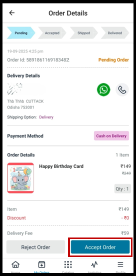 3. Click Accept Order to confirm you will fulfill this order.