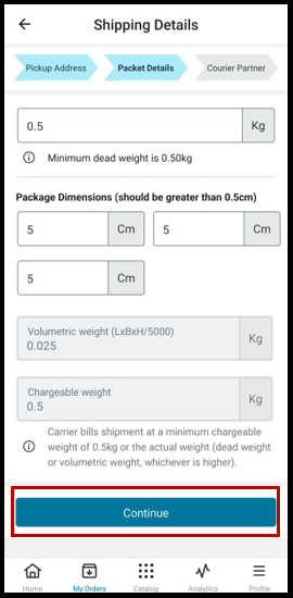 If the entered weight or dimensions do not match the actual package, the courier partner may delay pickup or adjust shipping charges later. Always enter accurate values to avoid issues.