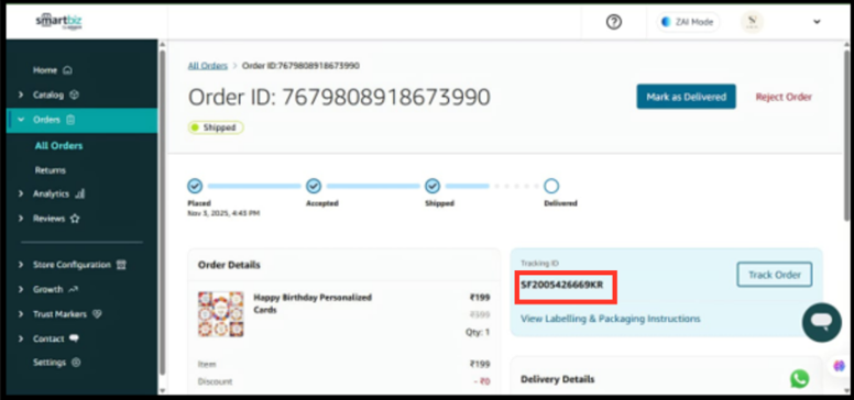 For orders shipped via Shiprocket: