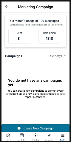 On Smartbiz, you can set up marketing campaigns to send promotional messages to your customers via Whatsapp. You can use these messages to promote your online webstore among your existing customers and inform them about upcoming discounts, launch of new products and collections and also encourage repeat purchases. This can be done easily by following a few simple steps.