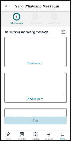 - Select the type of whatsapp message you would like to send from a pre-defined set of templates. Example – you can send a welcome message if you want to share promotional offer with potential customers. Click on ‘Edit’.