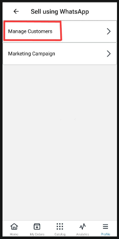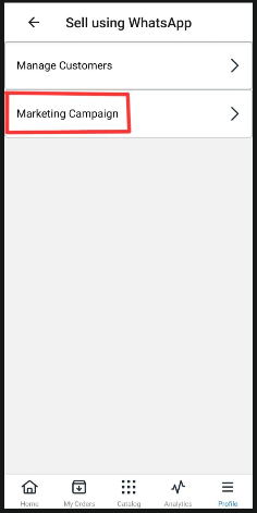 - Go to ‘My Profile’ tab on your home page and click on ‘Sell using Whatsapp’.