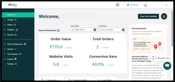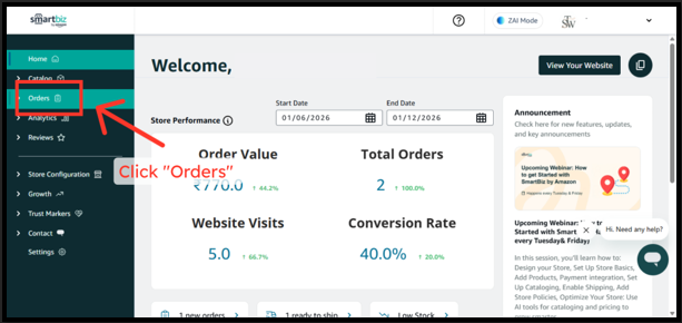Step 1: Open your SmartBiz website