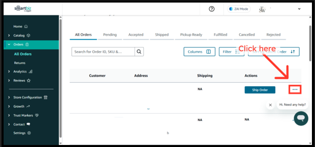 Note: In order to ship via Shiprocket, you will first need to setup a Shiprocket account on Smartbiz. Refer the article How to setup a Shiprocket account for details.
