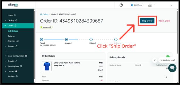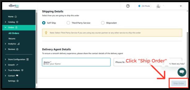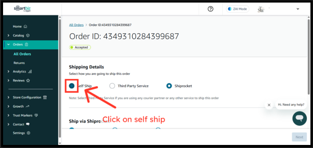 SmartBiz allows you to deliver orders using your own delivery agent or any third-party courier service using the Self Ship option. This is helpful if you already have local delivery staff or prefer a courier partner outside Shiprocket.