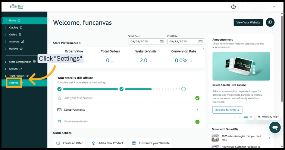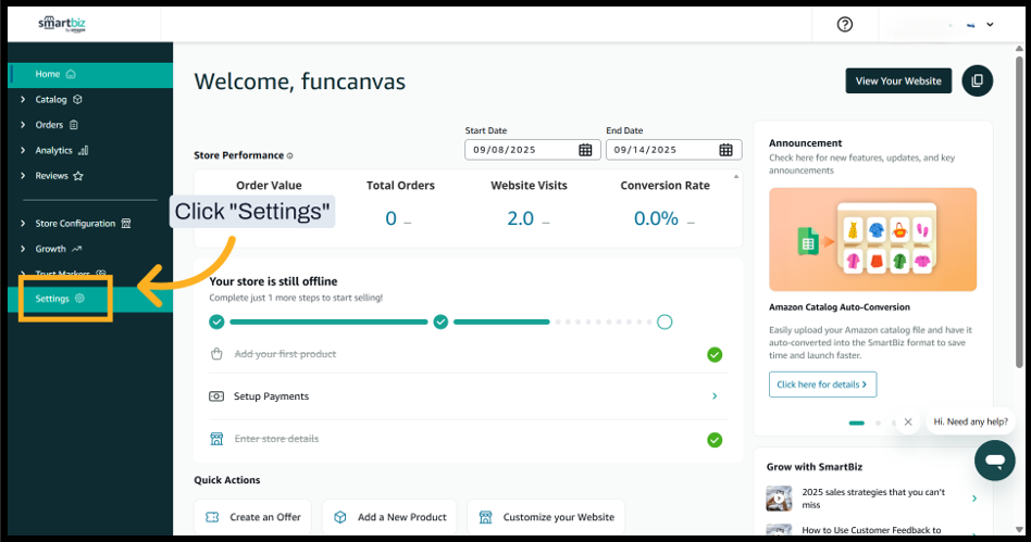 1. Navigate to the "Profile" section on your SmartBiz account dashboard.