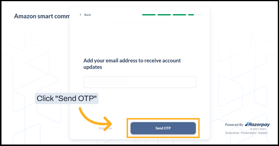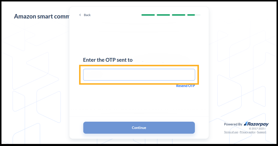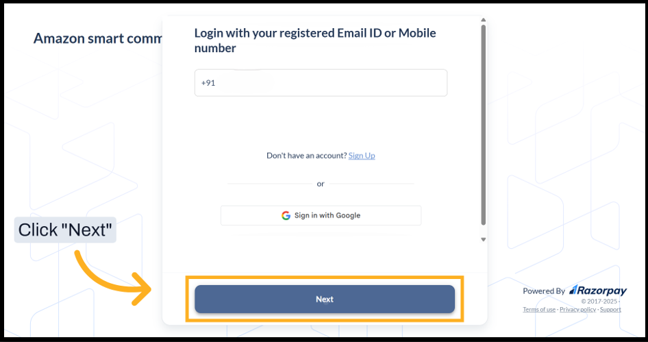 6. Enter your RazorPay account registered phone number or Email ID for verification.