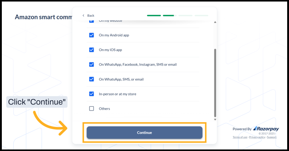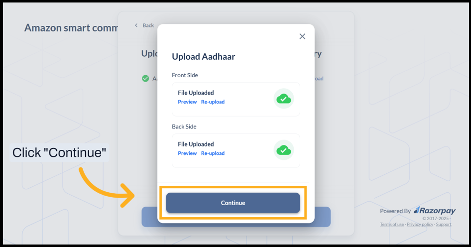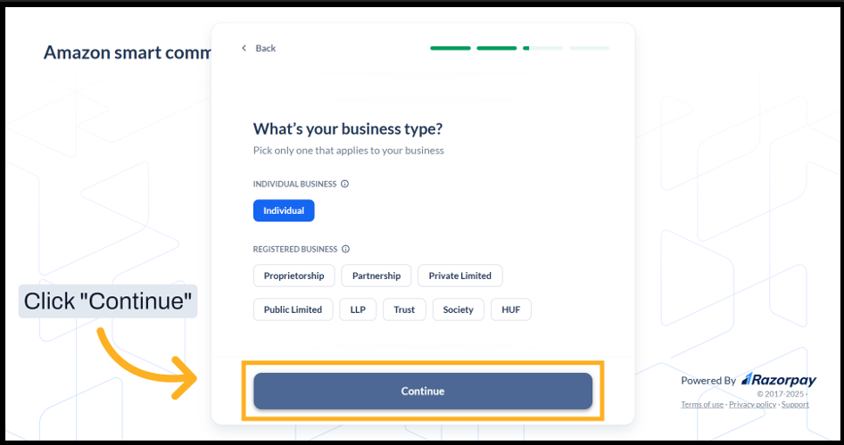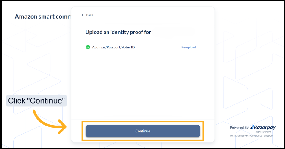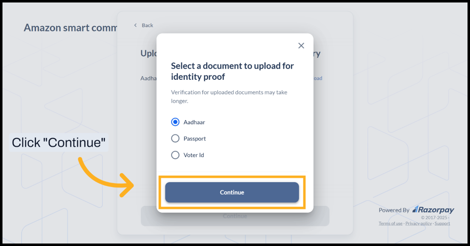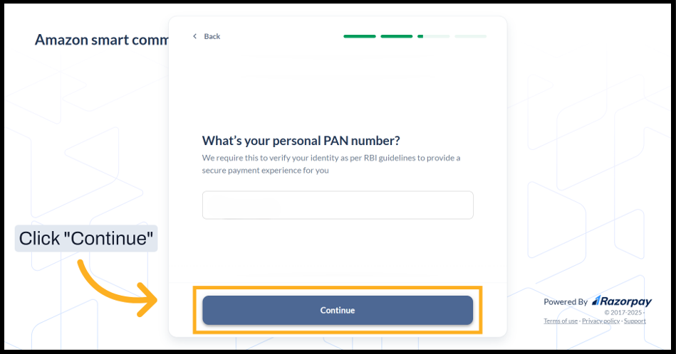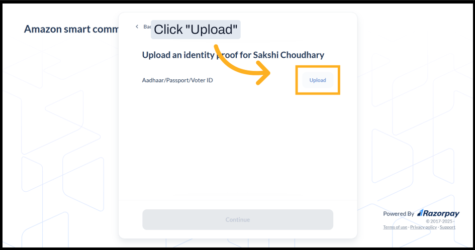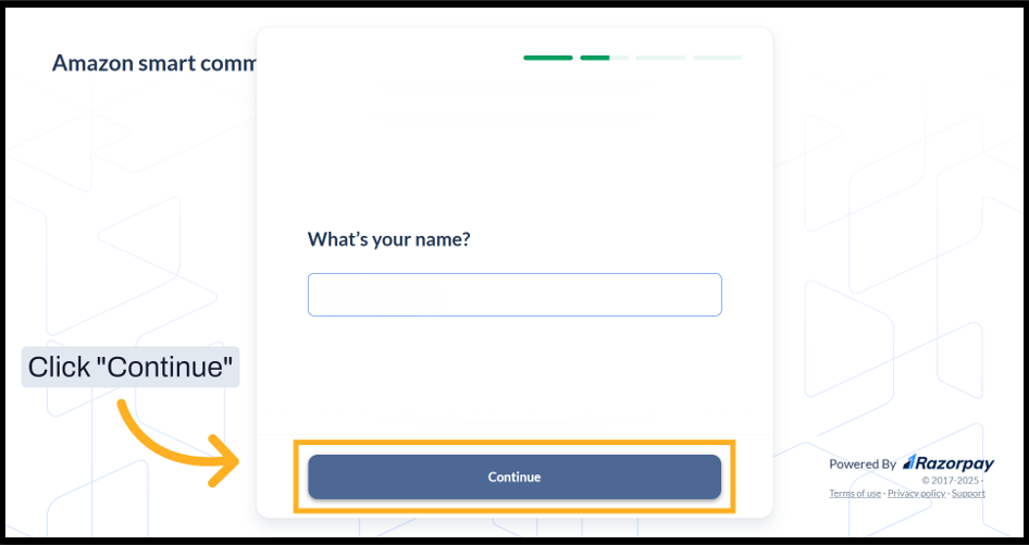 9. Fill the name as registered on your Razorpay account and click Continue.
