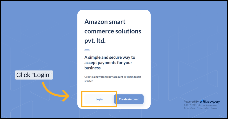 1. Log in to your Razorpay dashboard directly (outside of SmartBiz) using the credentials of the Razorpay account you wish to unlink.
