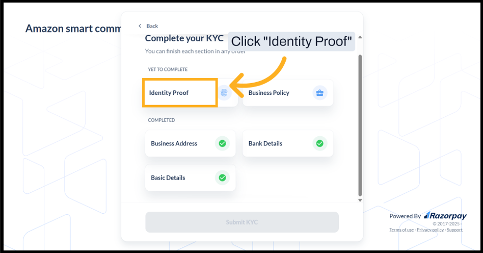 3. Steps to complete KYC verification with Razorpay via Mobile Application: