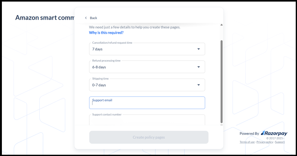 • Refund & Cancellation Policy - Must clearly state processing timelines (e.g., “Refunds will be processed within 5–7 business days”, “Cancellations allowed within 1–2 business days”).
