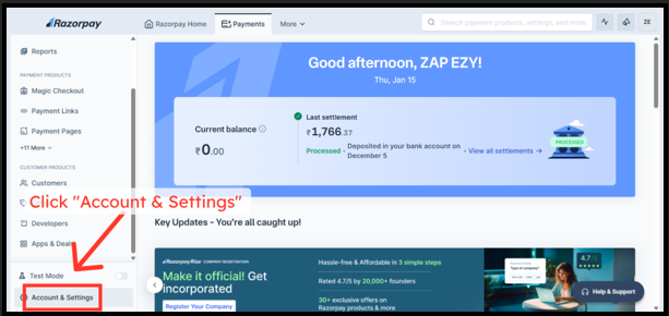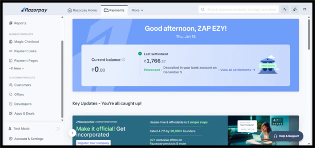 1. Why do I see "You're in Test Mode" in the Razorpay Dashboard?