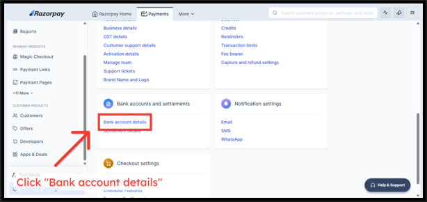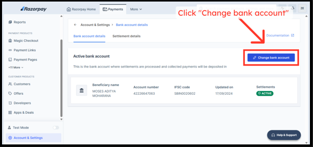 - Under Bank Account and Settlements, click Bank Account Details → Change Bank Account.