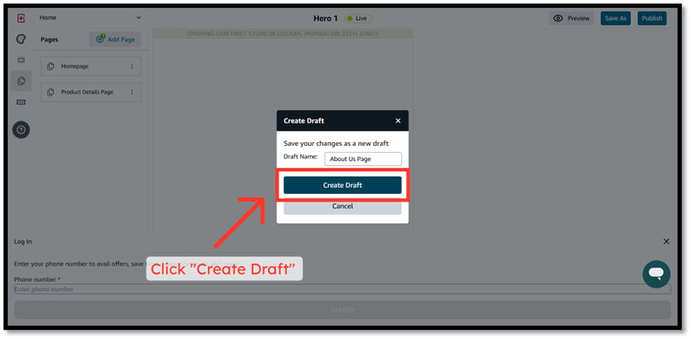 6. Please enter the Draft Name and click on 'Create Draft'. Post clicking, you will get a message of Draft created successfully.