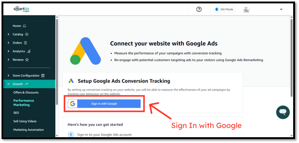 (If not, refer to: Connecting Google Ads with your SmartBiz Website)A custom domain linked to your SmartBiz store (required for verification)