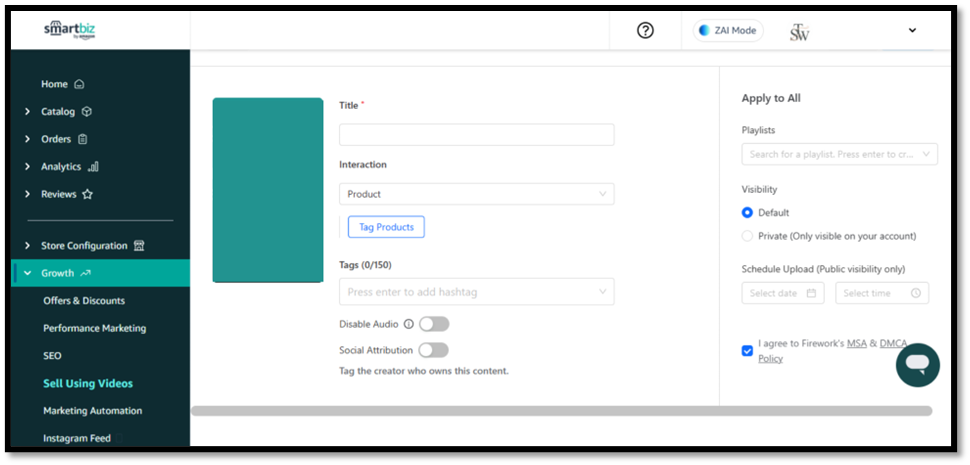 Firework helps you create interactive shoppable videos that appear on your SmartBiz store.
