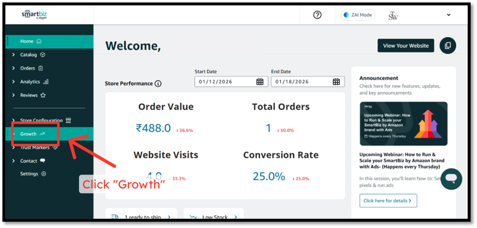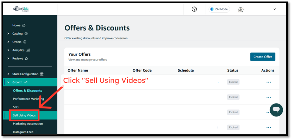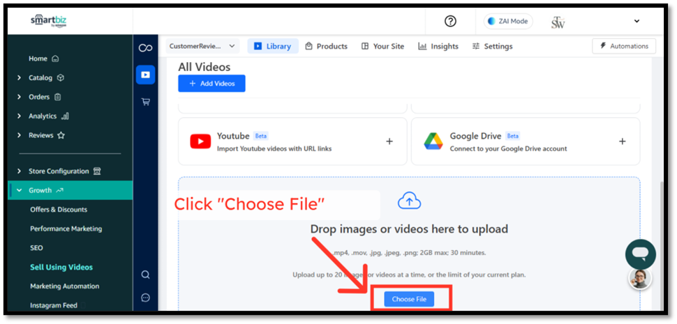 Step 1 — Click “Growth” → Sell Using Videos