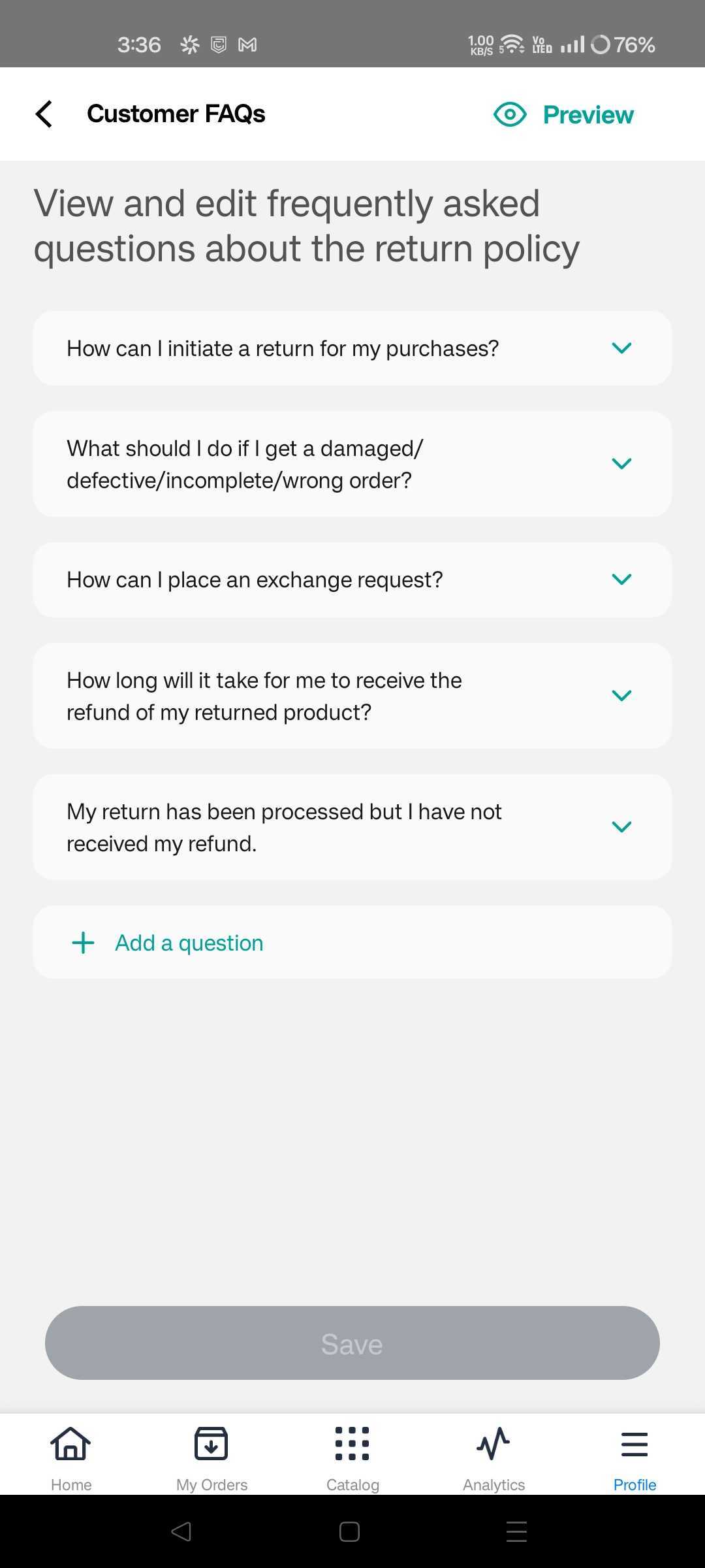 - You can edit the return policy and FAQs by clicking on the same from the returns page.