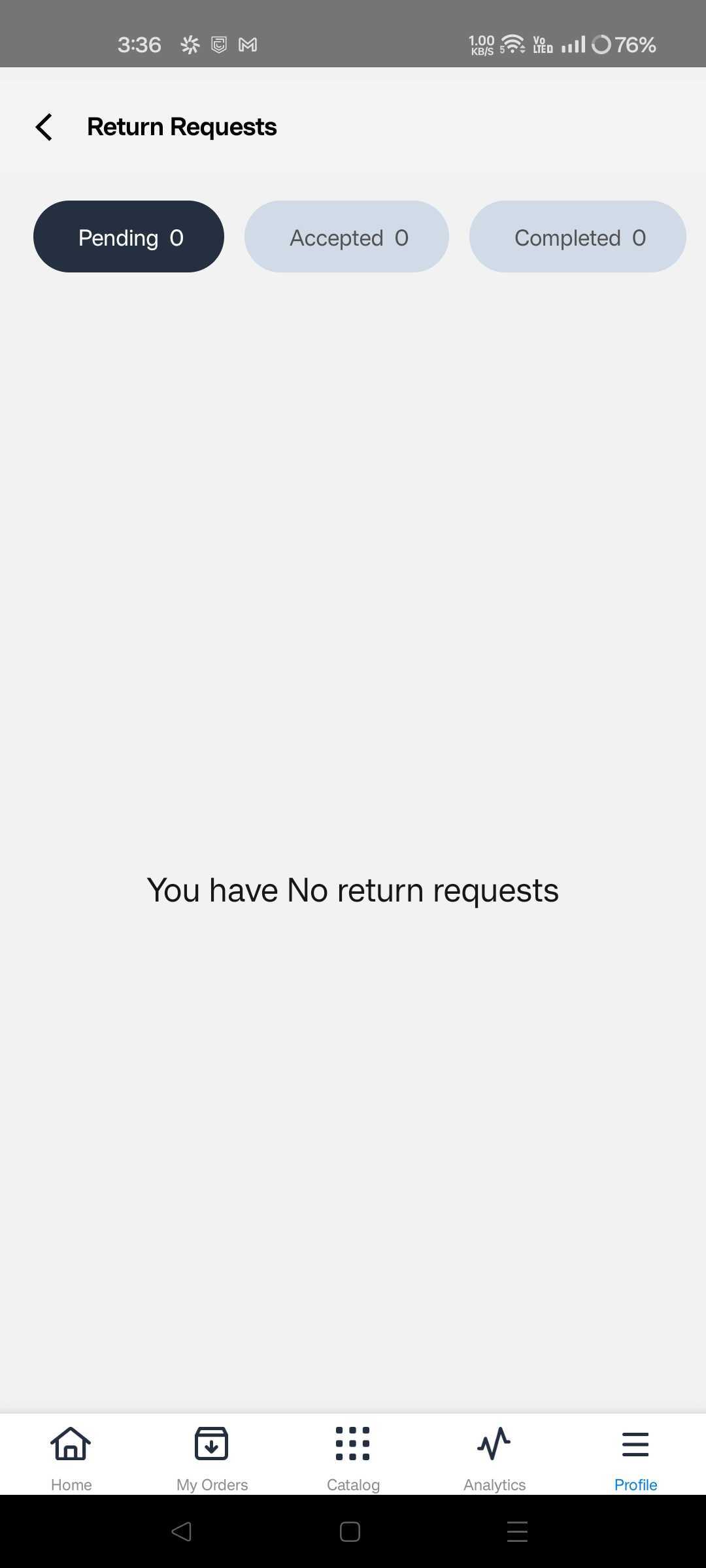 - Returns Dashboard: To process returns easily, you can click on ‘return requests’ under the returns home page. You will then see the dashboard with requests at different stages: Pending, Approved, Accepted and Rejected and All. You can use these tabs on the top to filter and take specific actions -