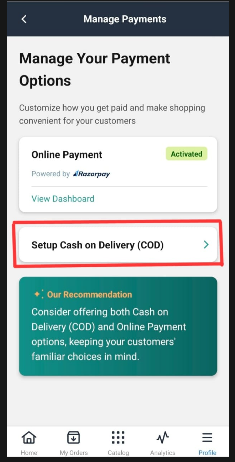 You can also manage COD settings from the SmartBiz desktop portal.