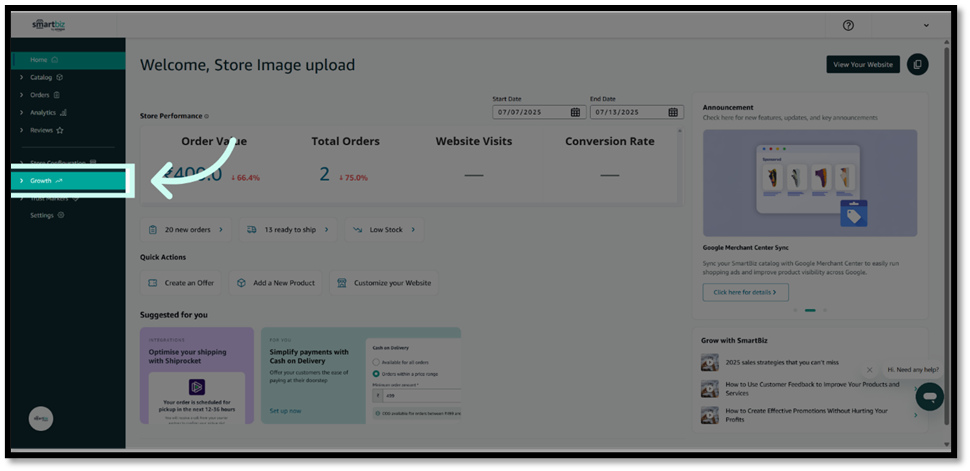 Begin your journey by selecting the "Growth" section to explore effective marketing strategies tailored for your business.