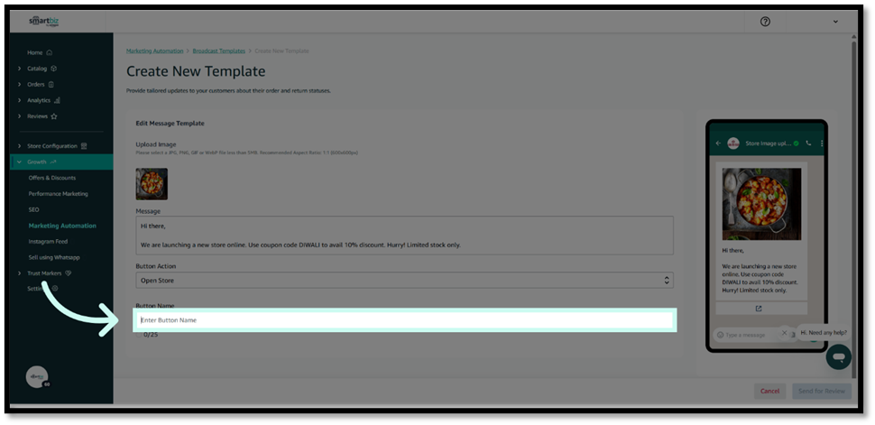 Assign a memorable name to your button, making it clear and enticing for customers.