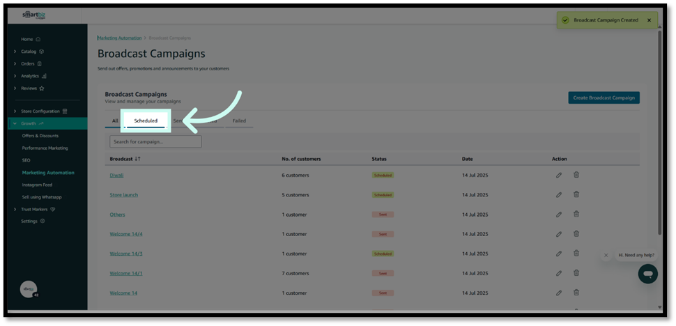 Check your scheduled campaigns to stay organized and ensure timely execution.