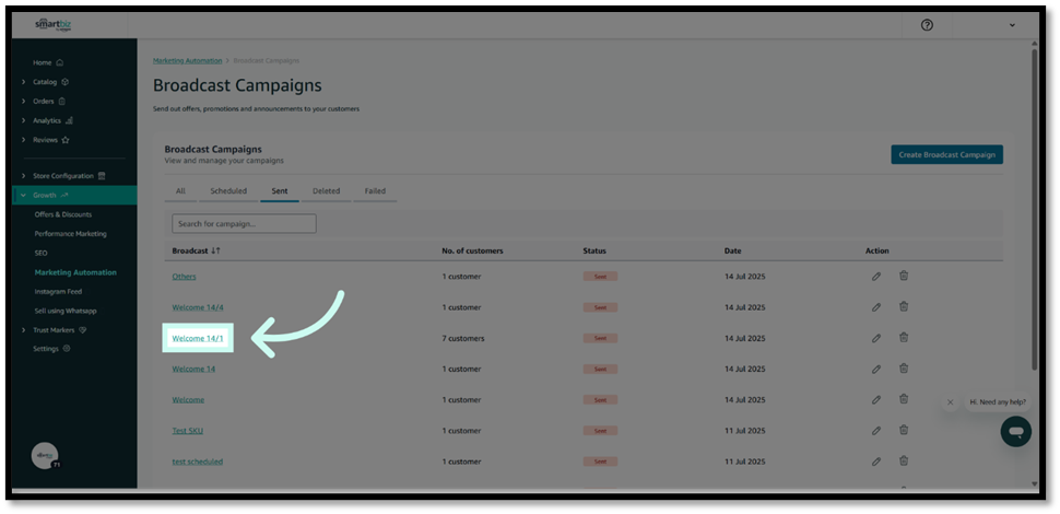 Examine your campaign titled "Welcome" to assess its effectiveness.