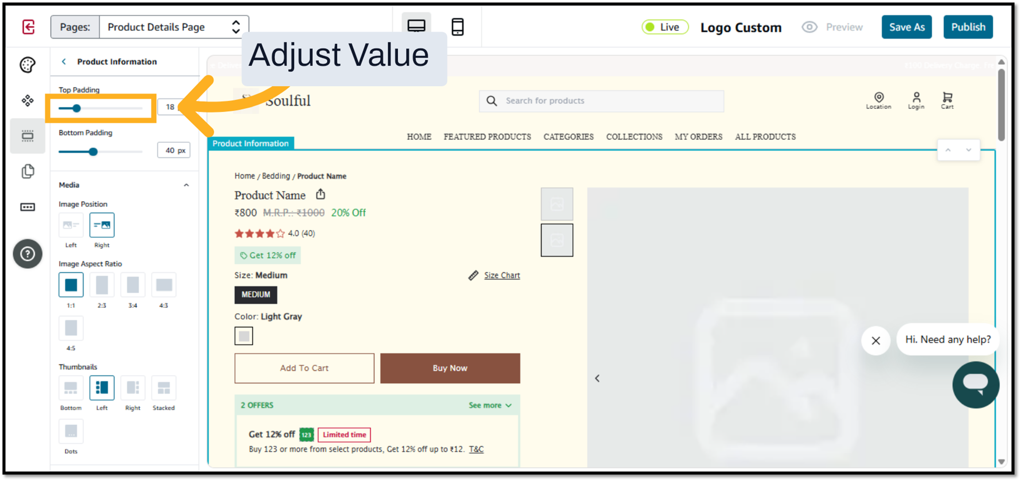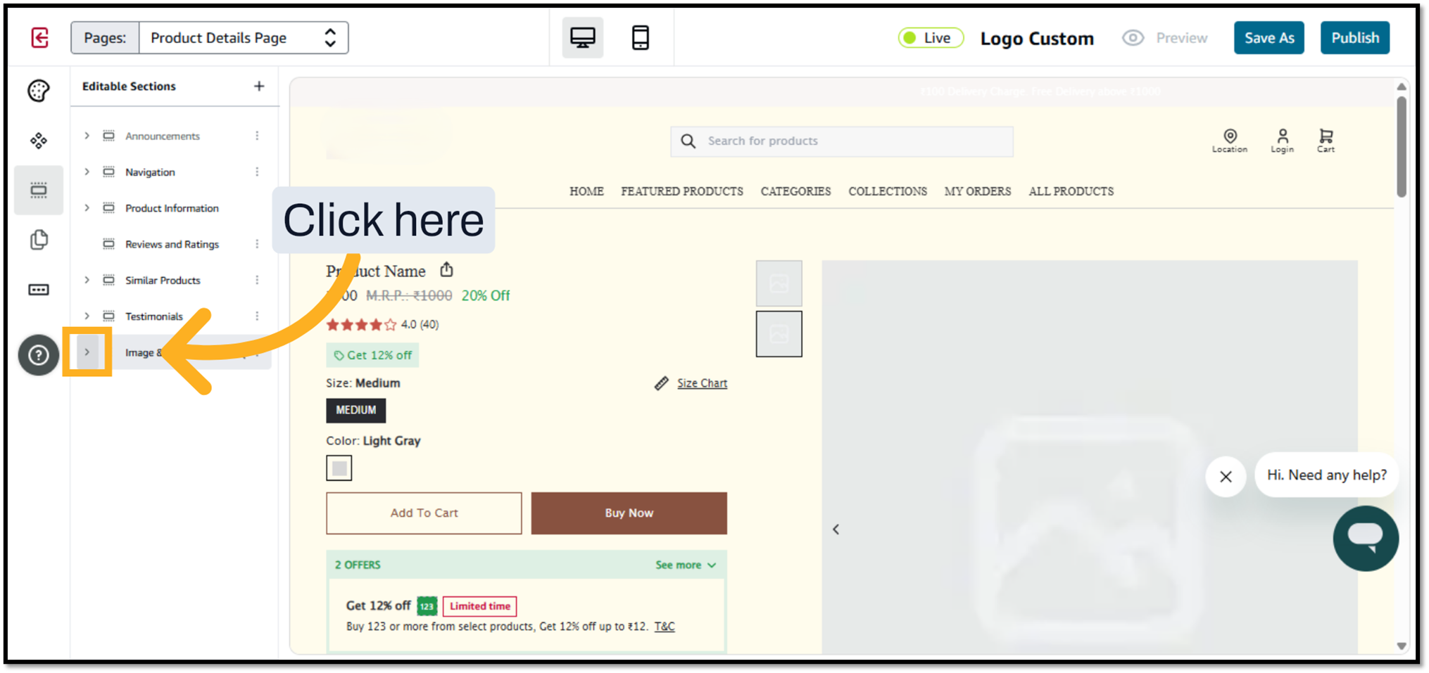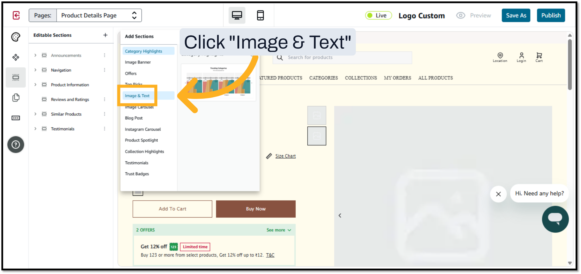 NOTE: Use widgets like “Product Information,” “Testimonials,” or “Image Banner” to highlight key product details effectively.