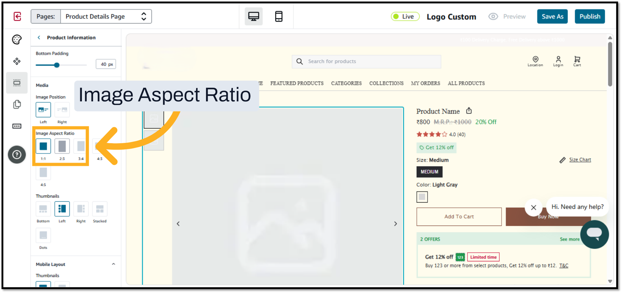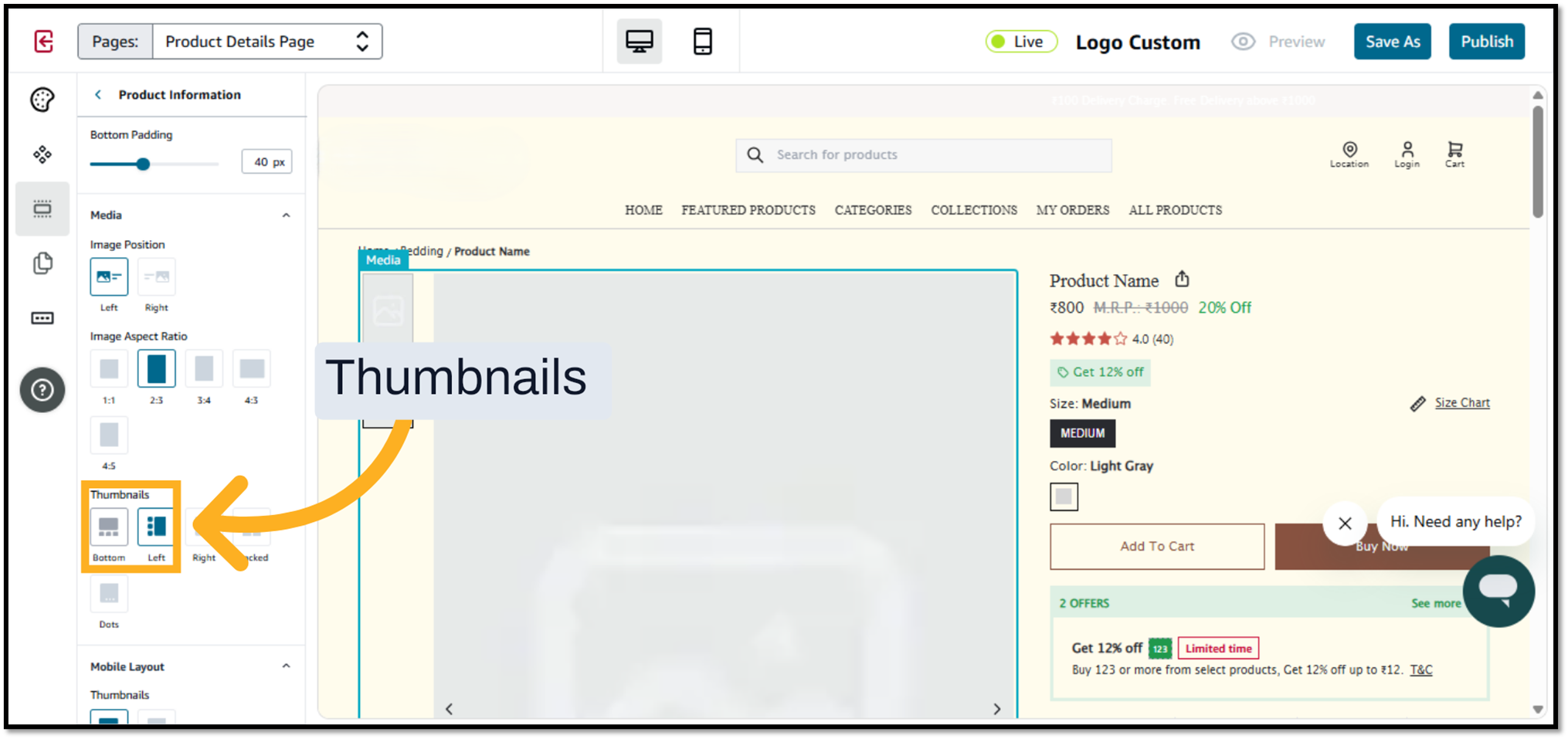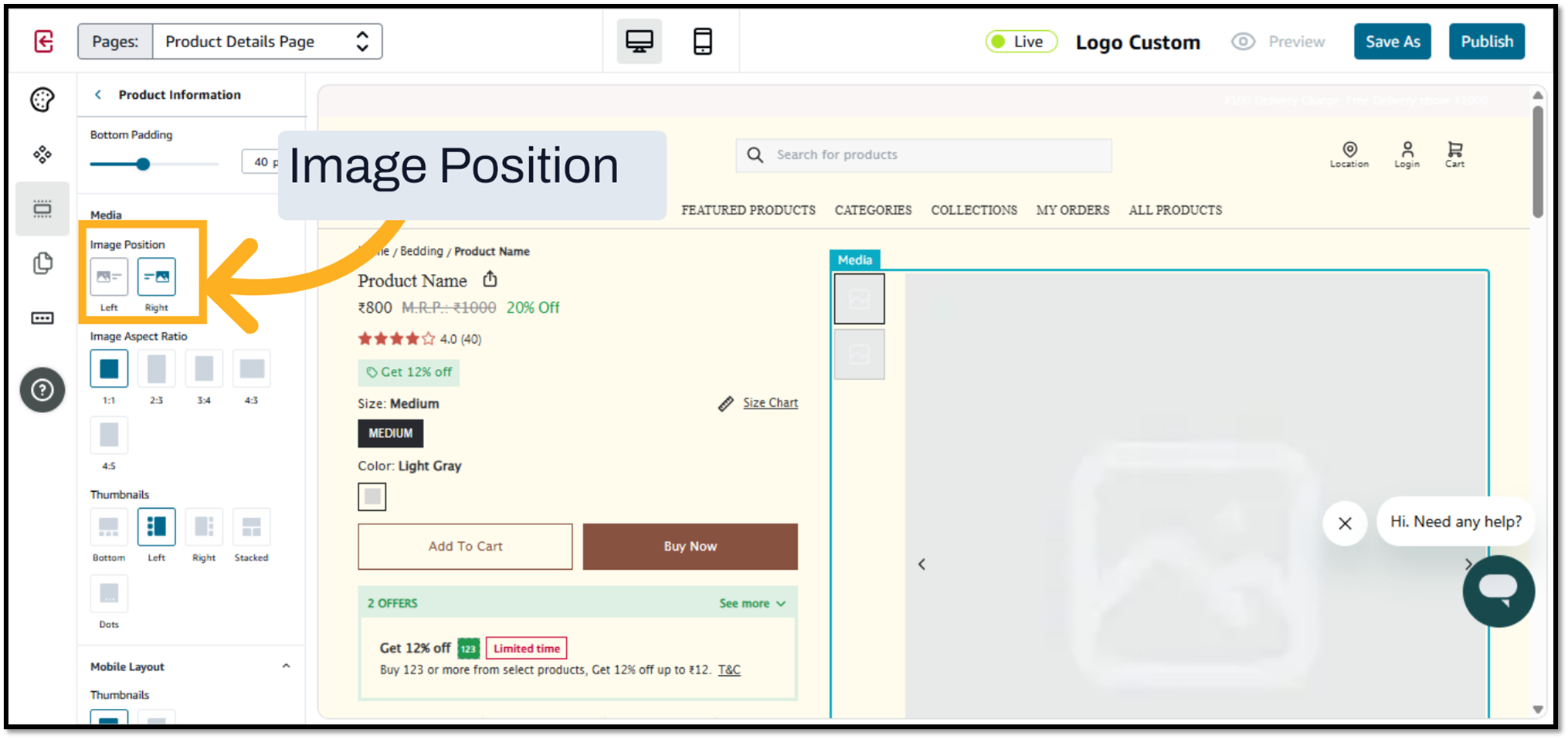 NOTE: Use widgets like “Product Information,” “Testimonials,” or “Image Banner” to highlight key product details effectively.