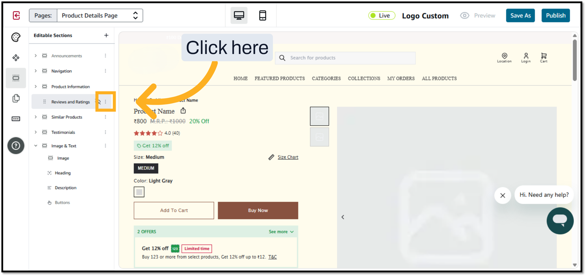 1. Within the Product Information Widget, you can rearrange sub-widgets such as Price, Title, Best Offer, or Ratings.