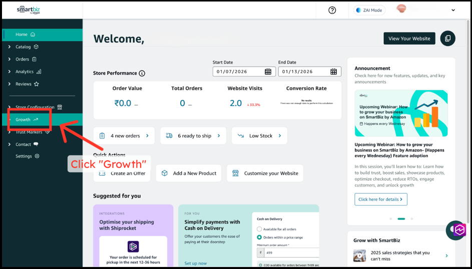 2. Navigate the Growth section from the dashboard