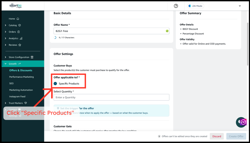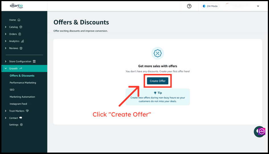 3. Go to Offers & Discounts. Now click on Create Offer.