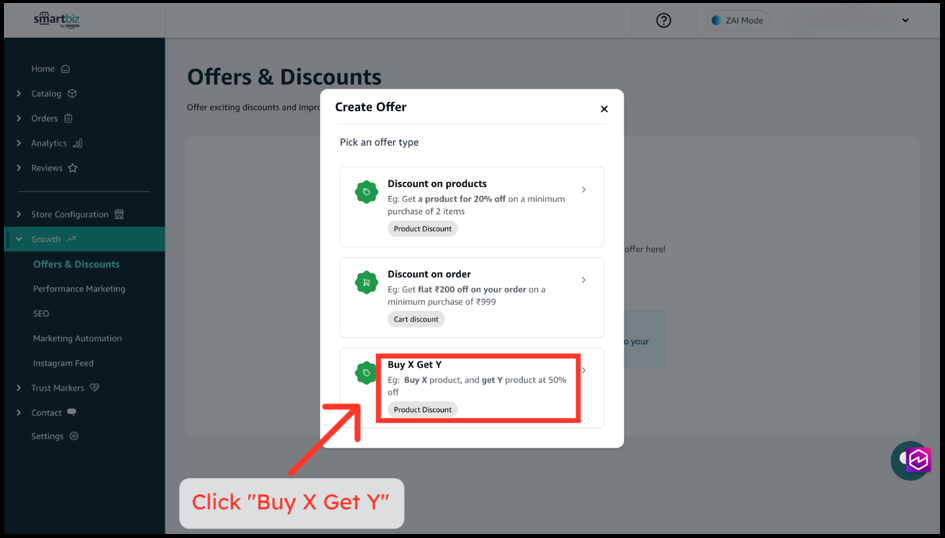 4. Select the offer type Buy X Get Y.