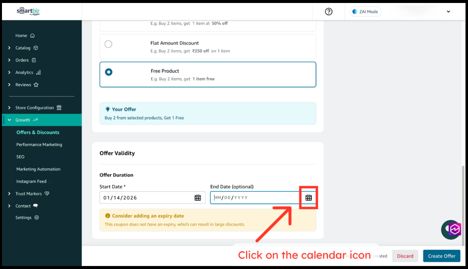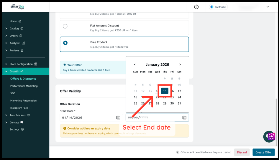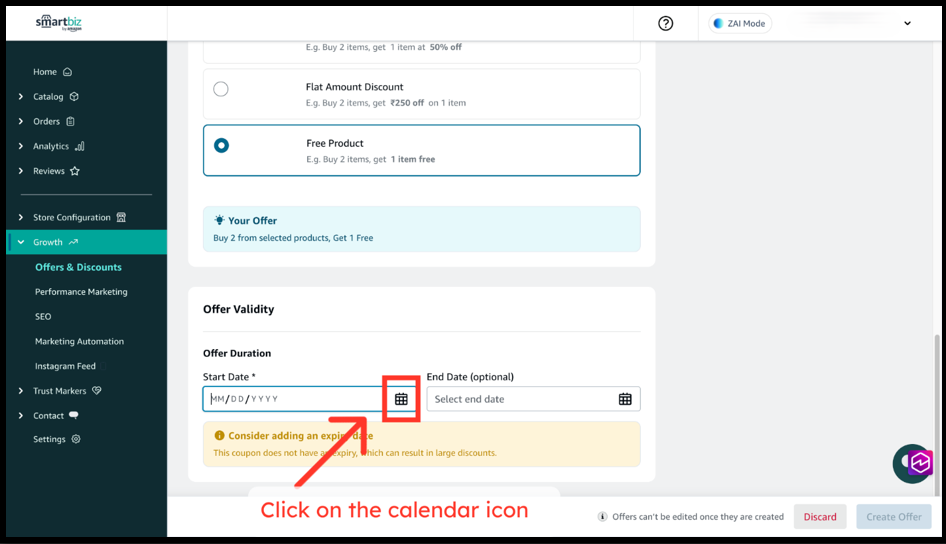 1. Select the Start Date for the offer (for example, today).