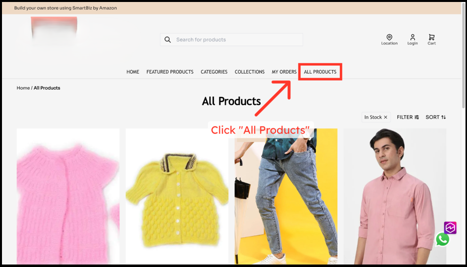 1. Go to your store website and open the All Products page.