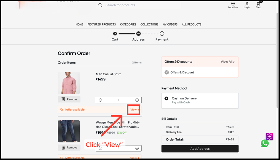 4. Open the Cart page by clicking on the Cart icon.