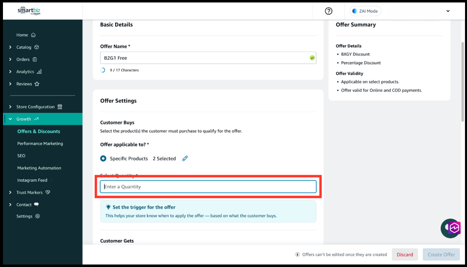 1. Enter a clear Offer Name (for example: Buy 2 Get 1 Free).