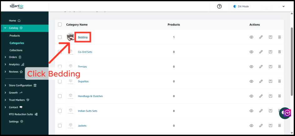 2. Select the category you want to configure (e.g., "Bedding")