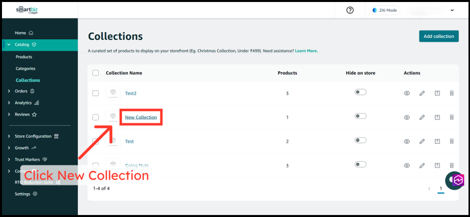 1. From the left sidebar, click Collections