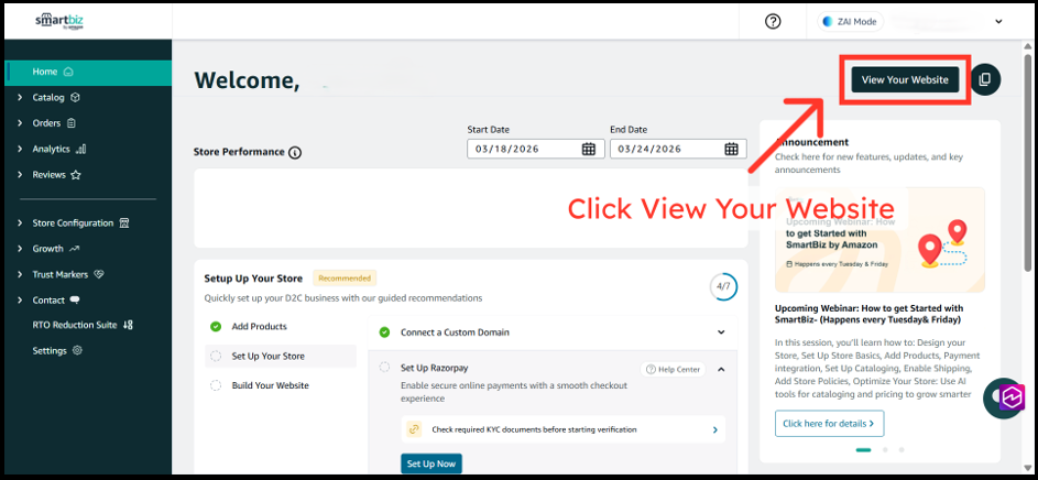 3. Your storefront will open at www.smartbiz.in.